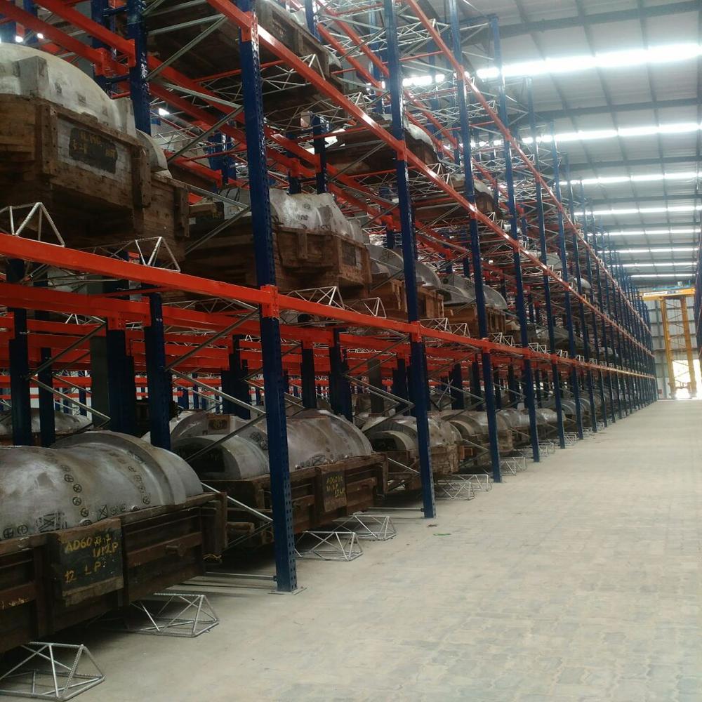 Overhead Travelling Stacker Crane with Gantry mounted on the Racking structures, this enables you to have equal load capacity from the bottom most level to the top most level of the rack. Available in customized load range and sizes.